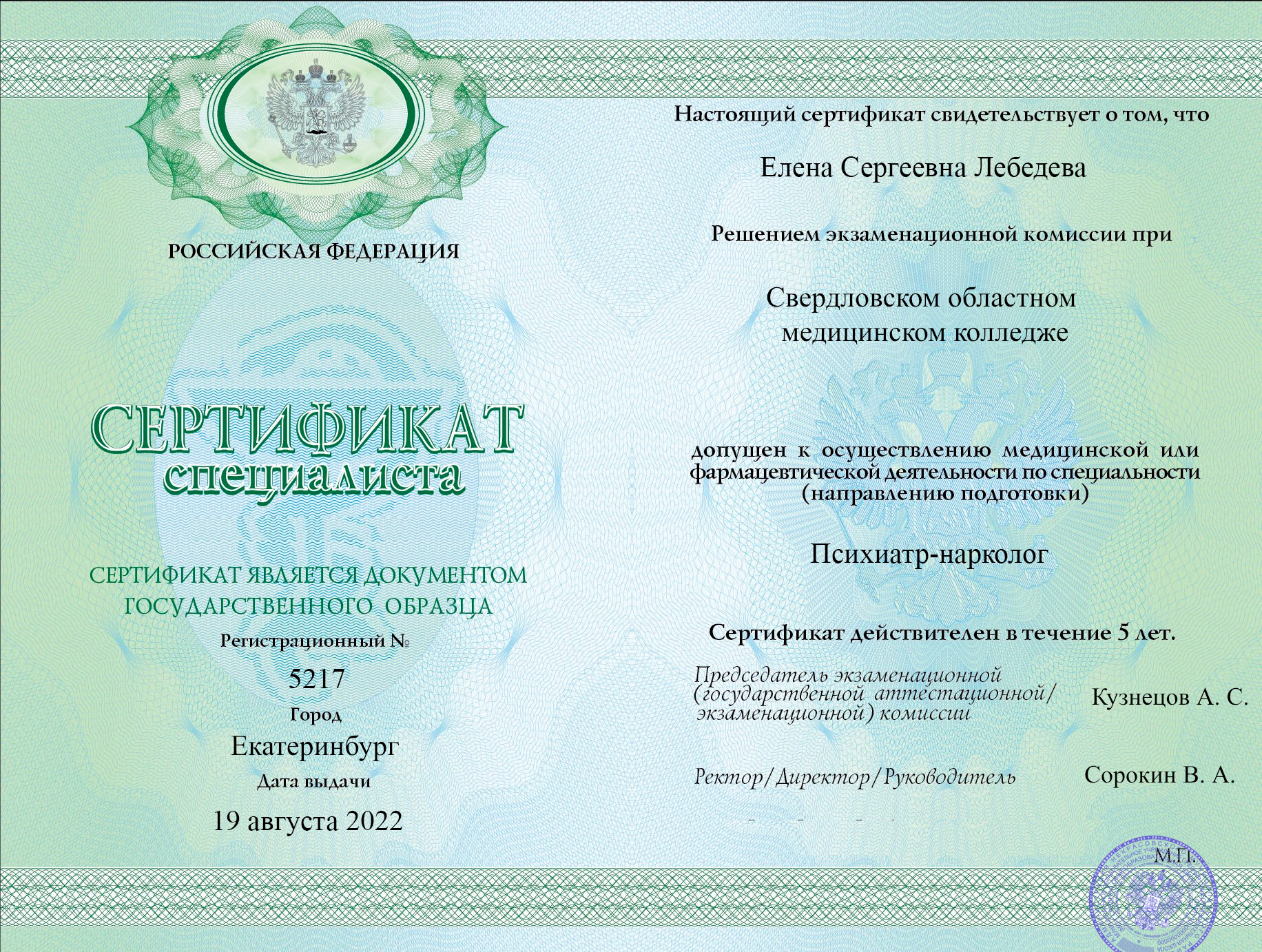 Елена Сергеевна Лебедева врач нарколог клиники доктора Стукаловой в Старом Крыме